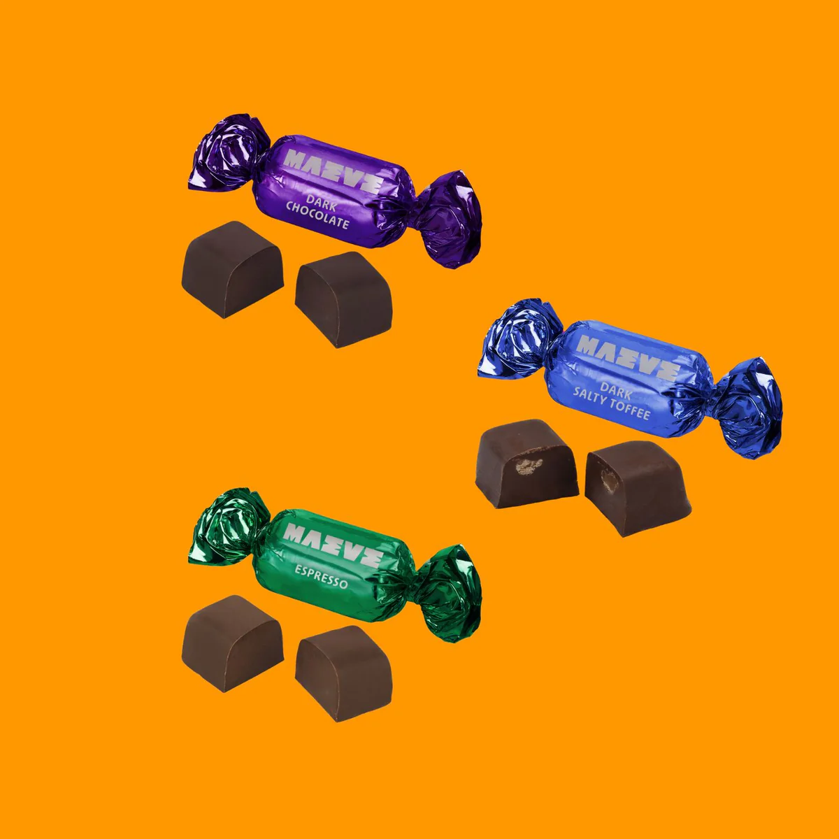 Includes: Dark Chocolate, Dark Salty Toffee, Espresso, Hazelnut Butter Crisp, Milk Salty Toffee, and Peanut Butter Crunch bonbons.