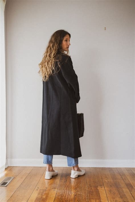 This ABLE double knit sweater coat is made of 53% BCI cotton, 27% polyester, and 20% nylon. This full-length cardigan features a relaxed fit, patch pockets, a removable self belt, a shawl collar, and drop shoulders.