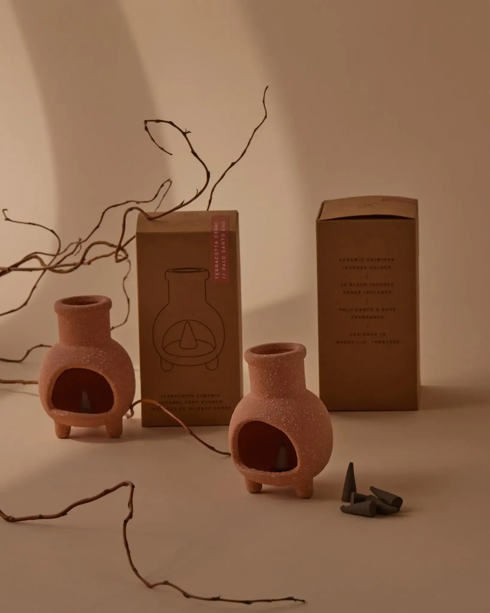 Ignite and be transported to a peaceful fireside retreat with our Ceramic Chimnea Incense Cone Holder. This incense cone and holder set will fill your home with a flameless fragrance. Pair this accessory with our cowboy hat incense burners and cowboy boot match stick holders for a cohesive ceramic theme. Please recycle the packaging!