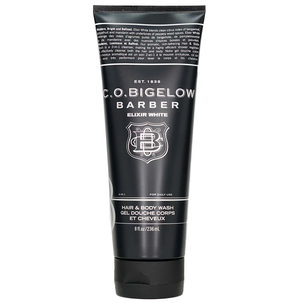 No. 1607 Modern, bright and refined - Aloe Vera 0.5%, Pro Vitamin B5 1% C.O. Bigelow's Elixir White blends clean citrus notes of bergamot, grapefruit and mandarin with undertones of peppery wood spices. This aromatic, richly lathering Hair and Body Wash is a 2-in-1 cleanser, making for a highly efficient shower regimen to effectively cleanse both hair and body. This C.O. Bigelow's newest men's fragrance. Pair it with Elixir White Ultra-Light Body Lotion and Cologne for a perfect gift.