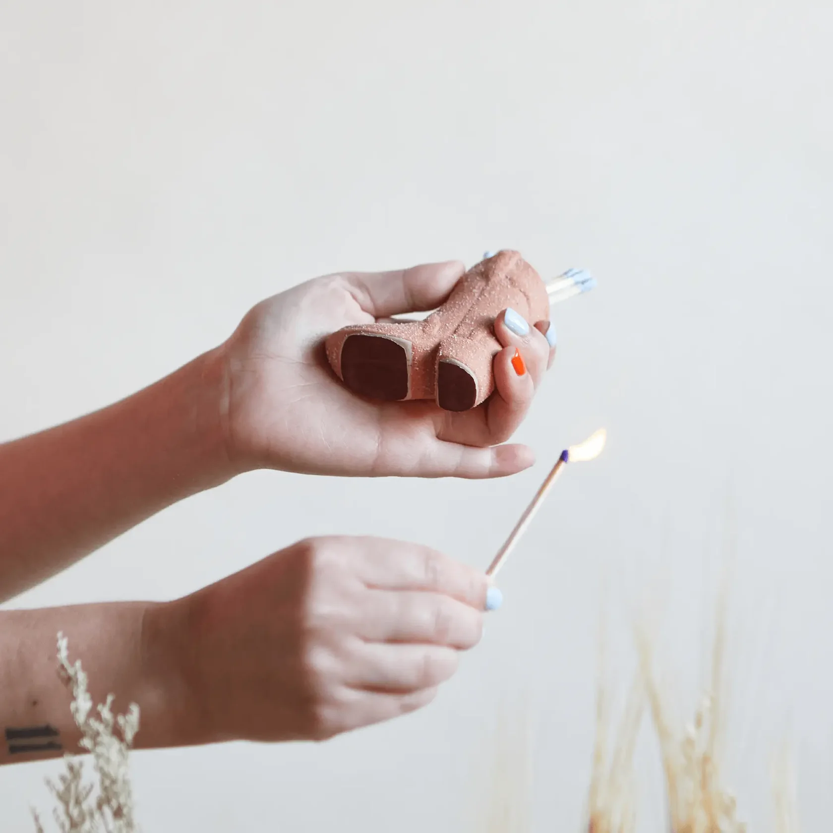 Includes: 25 colorful safety matches with ceramic cowboy boot match holder