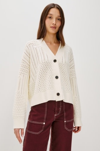 The Geneva is a classic academia-style cardigan, designed in 100% cotton with patchwork pointelle details for a distinctive touch. Its mid-weight knit and relaxed fit make it ideal for layering across seasons.