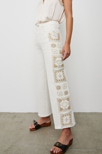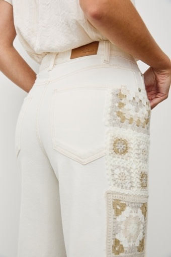 Our best-selling Getty style, just shorter. This jean features the same flattering wide-leg Getty fit, with an ankle-baring 27" inseam. Fabricated from comfortable, light-stretch denim with playful crochet paneling.