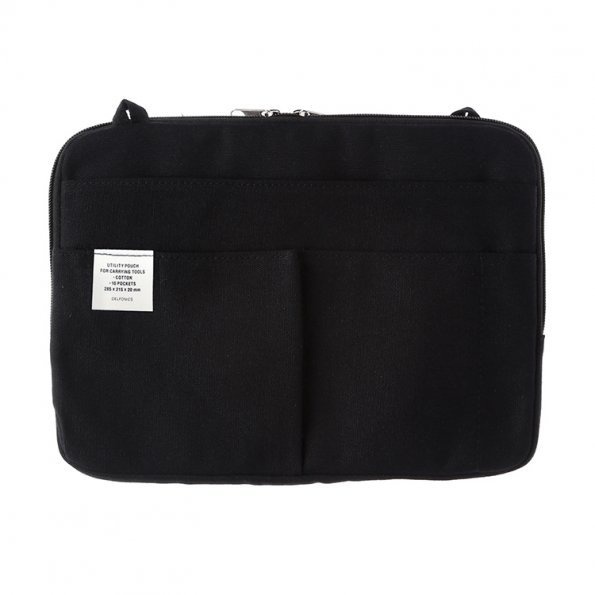 • Durable, slim-profile 10 pocket case with protective cushioning for electronics. Use inside a larger bag or on its own (with or without strap - sold separately). Sized to hold up to 10.5" PC or tablet such as iPad Pro. All cotton.