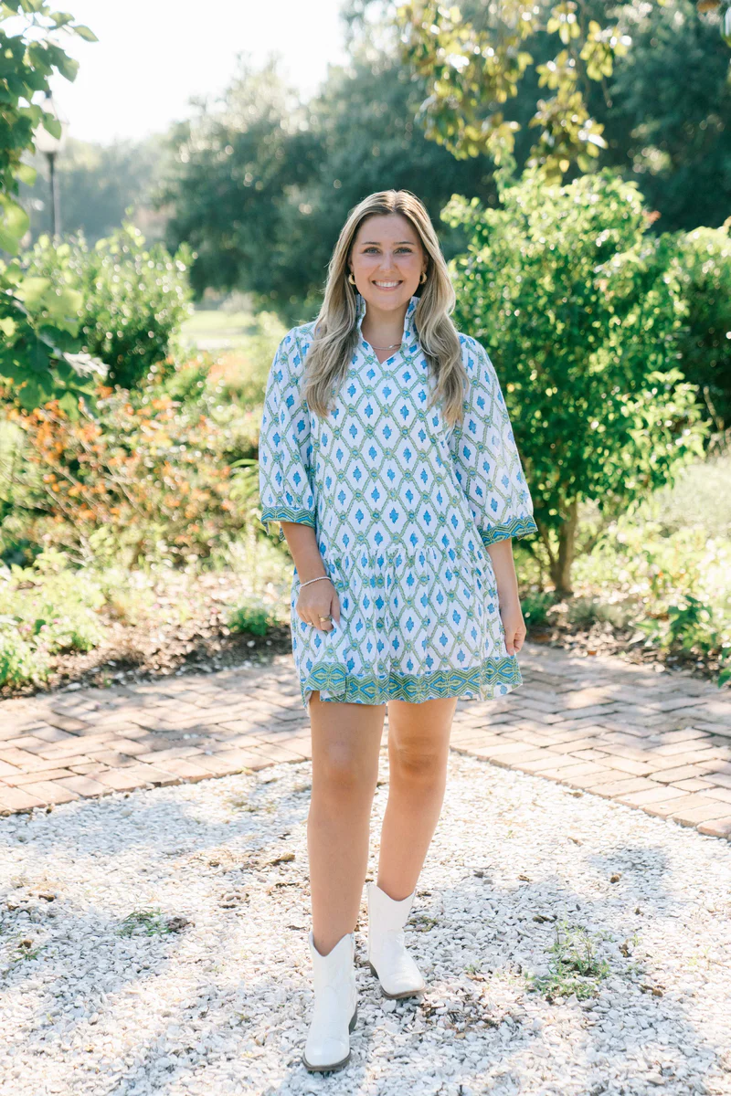 • The Liliana Dress is effortlessly refined with a touch of playful charm. Designed with three-quarter sleeves and a flattering v-neckline, it’s finished with a delicate ruffle collar for a feminine detail. The drop waist flows into a softly ruffled skirt, creating a silhouette that’s both relaxed and elegant—perfect for any occasion.