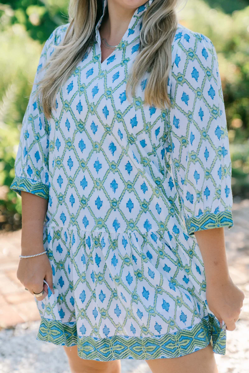 The Liliana Dress is effortlessly refined with a touch of playful charm. Designed with three-quarter sleeves and a flattering v-neckline, it’s finished with a delicate ruffle collar for a feminine detail. The drop waist flows into a softly ruffled skirt, creating a silhouette that’s both relaxed and elegant—perfect for any occasion.