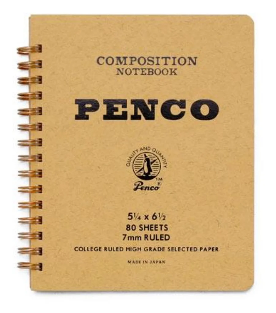 American-inspired classic composition notebook with double-ring spiral binding by Penco. 80 sheets lined. Made in Japan. Large