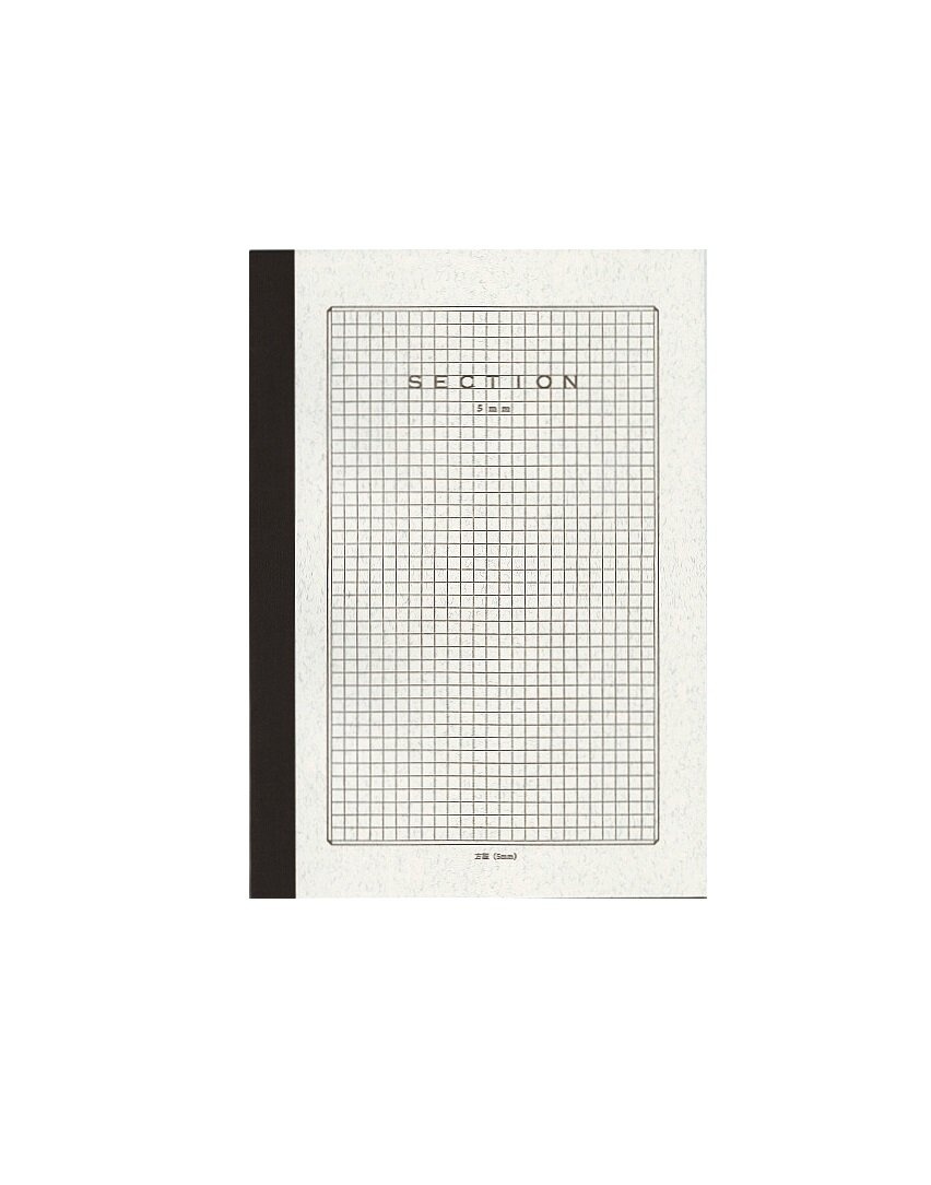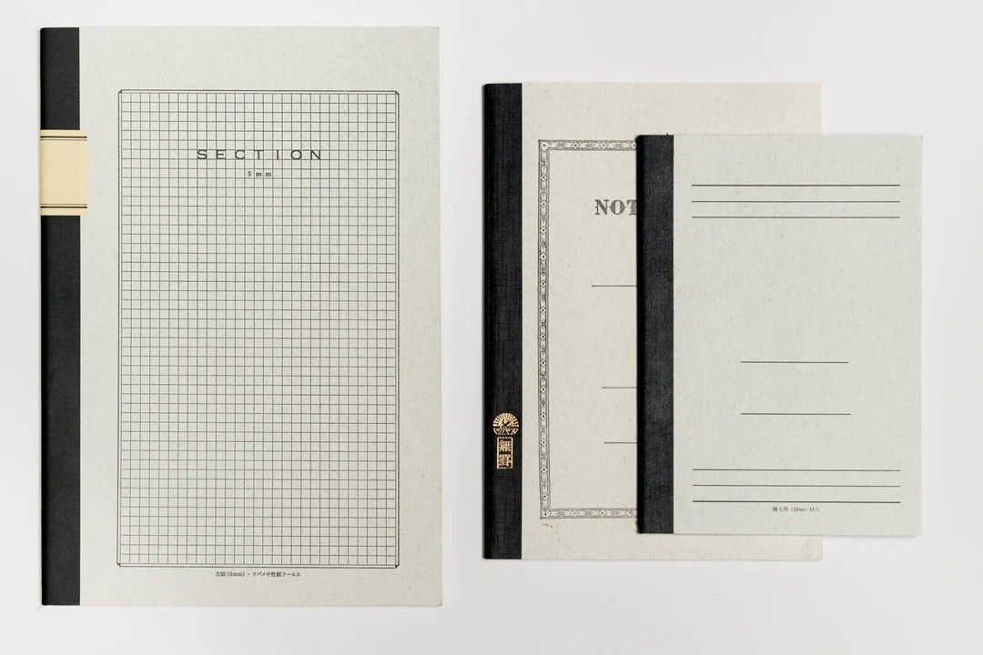 Lightly printed 5mm gridded notebooks with neutral "fools paper"; thread-bound.
