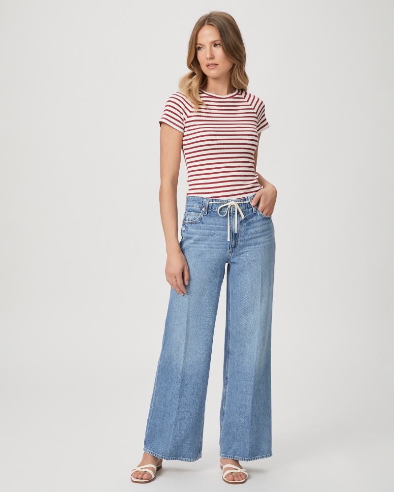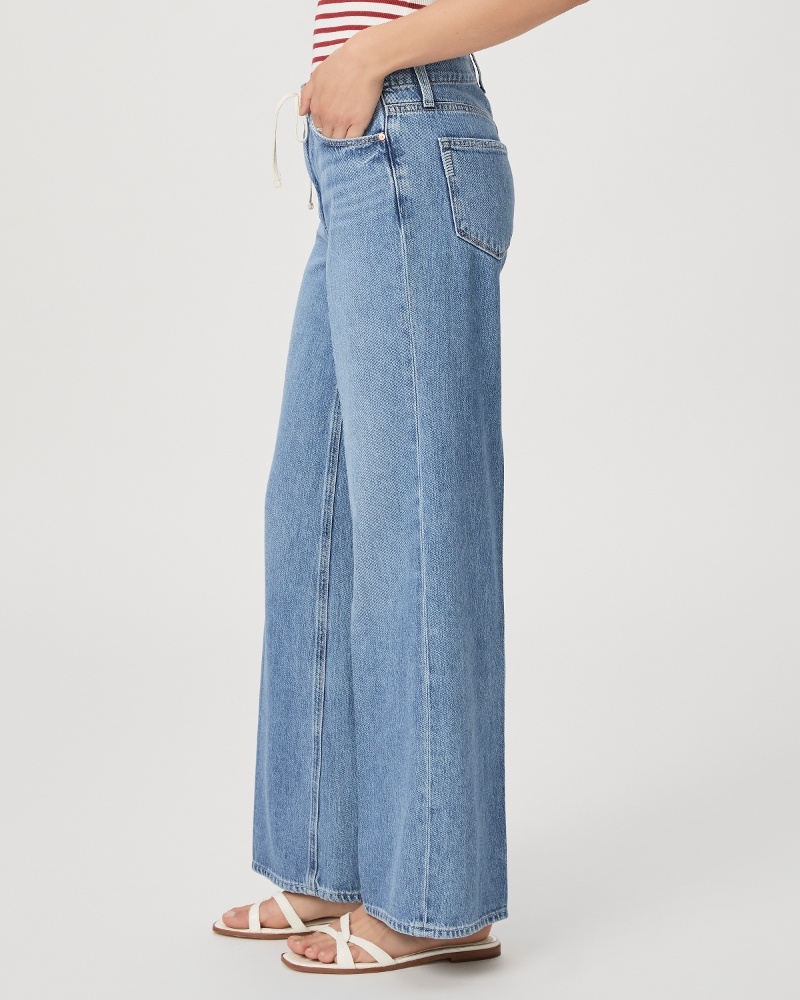 Just as cute as they are comfortable.Experience effortless style with the Zoey Jeans by Paige. Designed in a chic Alaya color, these wide-leg jeans are crafted from high-quality cotton for comfort and durability. The textured pattern adds a touch of sophistication, while the mid-rise and practical pockets ensure functionality. Featuring a secure button closure, these jeans are a versatile addition to any wardrobe, perfect for elevating your everyday look.